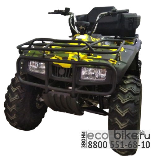 - Привод 4х2: простой и надёжный, позволяющий без коробки передач, разгонять квадроцикл до 60 км/ч и тянуть прицеп до 2000 кг.(сравните с бензиновыми квадроциклами!).