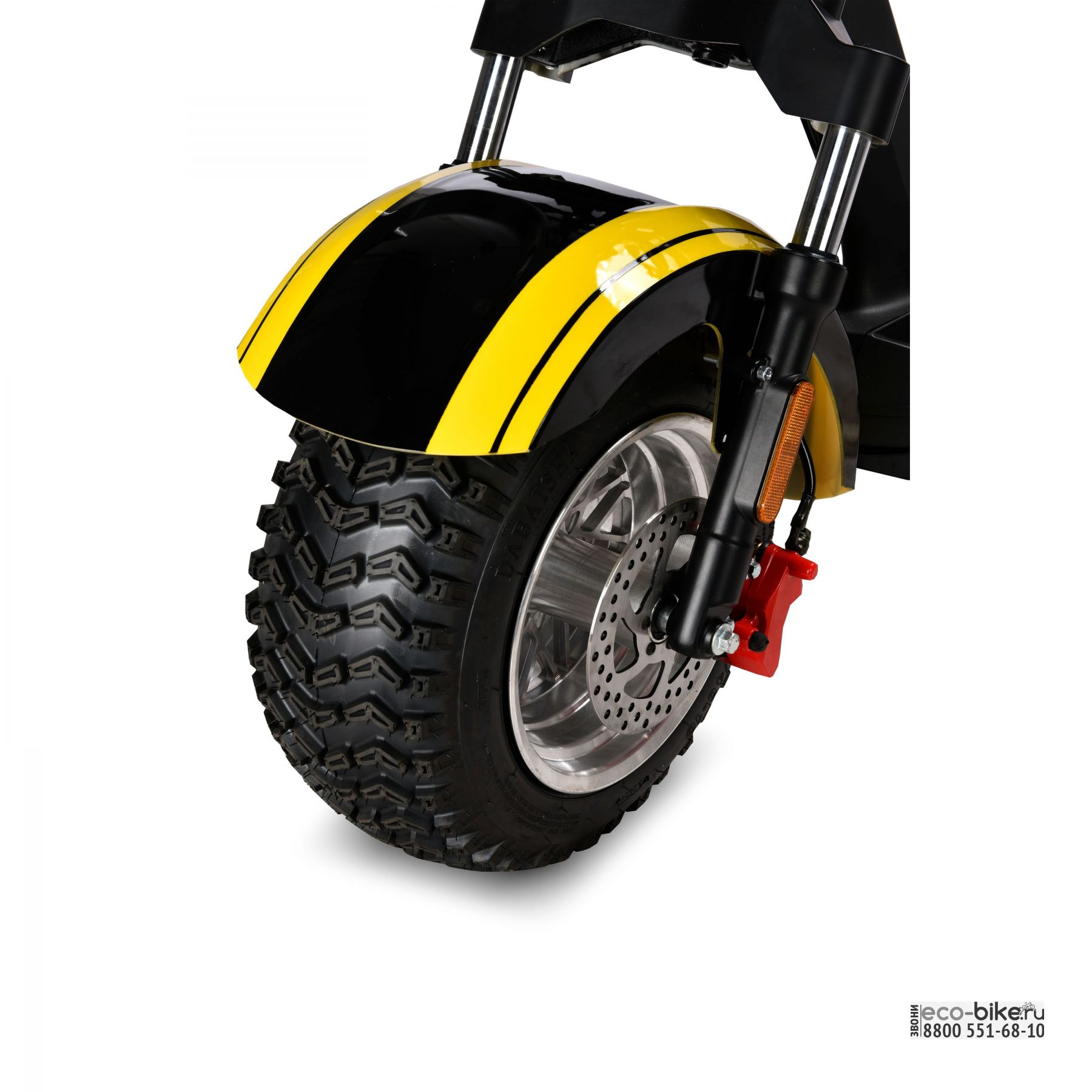- шоссейная резина на 10-дюймовых колесах с низким профилем позволяет круглогодично использовать скутер и без проблем передвигаться по бездорожью и пересеченной местности;